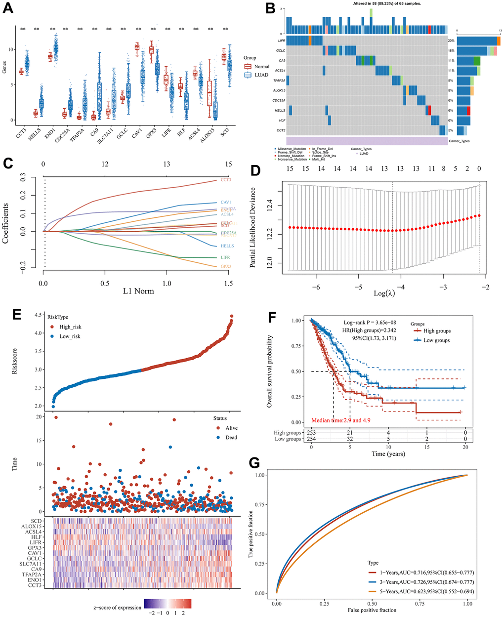 - 33. Tian Q, Zhou Y, Zhu L, Gao H, Yang J. Development and Validation of a Ferroptosis-Related Gene Signature for Overall Survival Prediction in Lung Adenocarcinoma. Front Cell Dev Biol. 2021; 9:684259. https://doi.org/10.3389/fcell.2021.684259 [PubMed]