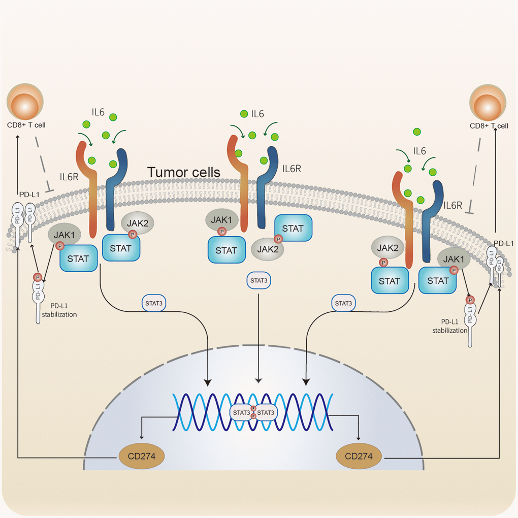Due to the individual heterogeneity in the immune microenvironment, we developed the quantification model of the ICI score for comprehensive evaluation on outcomes. Using GSEA, we identified pathways related to immune responses, such as JAK-STAT signaling, NOD-like receptor signal, RIG-I-like receptor signaling, cytokine-cytokine receptor interaction, and apoptosis pathways. In particular, the IL-6- JAK-STAT3 signaling pathways plays a crucial role in human cancer [20]. Recently, a review by Kobayashi Y et al. detailed the immune escape mechanism of the JAK-STAT signaling pathway in cancers [21]. This pathway could be frequently activated in cancers or triggered by cytokines such as ILs [20–22]. In some cases, the JAK-STAT pathway may also be involved in resistance to chemotherapy or other treatments. Upon binding of cytokines to their cognate receptors, STATs could be activated by members of the JAK family of tyrosine kinases. Once activated, they dimerize and translocate to the nucleus and regulate the expression of target genes. Corresponding to the above, IL6 was significant higher in the high ICI score group, and the JAK-STAT signaling pathway was enriched in the same group. A similar expression was observed on PD-L1 within the two groups. Regarding PD-L1, it was regulated via a variety of signal pathways [23], one of these pathways is the JAK-STAT signaling [24]. PD-L1 could inhibit cytotoxicity and activation of CD8+ T cells and reduce the ratios of CD8+ T cells in the TME [25, 26]. In tumor immunity, CD8+ T cells act as the key tumor-suppressing cells and induce the death of tumor cells [27]. Deficiency of CD8+ T cells could not function their immune function and contribute to immune evasion of tumor cells [27, 28]. Furthermore, TIDE, a computational framework, was used to validate the probability of tumor immune escape. A higher TIDE score, a higher chance of immune escape and a worse immunotherapy response [29]. In the results section, we also reported patients in the high ICI score group had higher TIDE scores. Overall, patients with high ICI scores had a greater potential for immune escape due to higher TIDE scores and fewer CD8+ T cells.