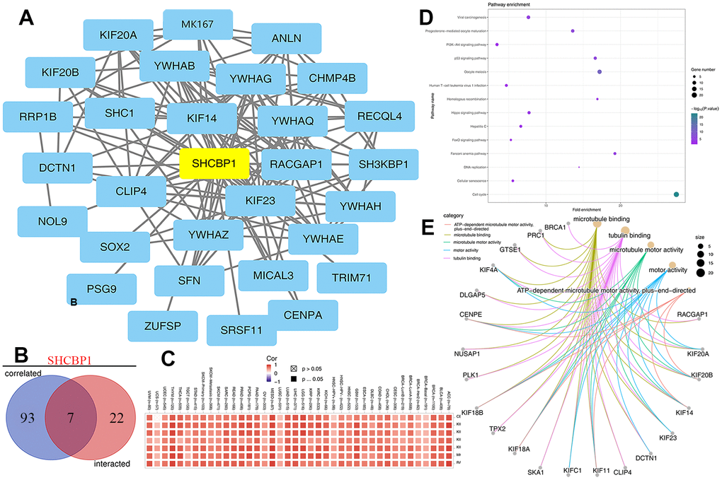 SHCBP1 involved in various physiological and pathological processes, such as cytokinesis during mitosis and meiosis [8]. Recently, a growing number of studies have shown that SHCBP1 promotes tumorigenesis and progression of human tumors and is closely related to cancer prognosis. The stronger the expression of SHCBP1 protein in breast cancer tissues, the later the clinical stage and the shorter the survival period of the patients [10]. The expression of SHCBP1 was associated with lymph node metastasis in glioma, and patients with over-expressed SHCBP1 had a poor prognosis [28]. Moreover, the knockout of SHCBP1 reduced the migration and invasion ability in EGF-induced bladder cancer cells [11]. In addition, SHCBP1 plays an important role in FGF, NF-κB, MAPK/ERK, PI3K/AKT, and TGF-β1/Smad signaling, as well as participating in T cell development and downstream transduction regulation [7]. However, despite SHCBP1 being extensively studied in vitro previously, SHCBP1’s role in pan-cancer remains unclear.