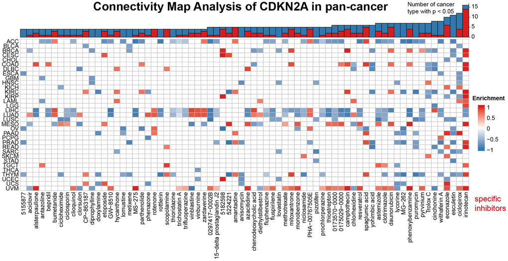 Connectivity map (CMap) analysis of CDKN2A in pan-cancer