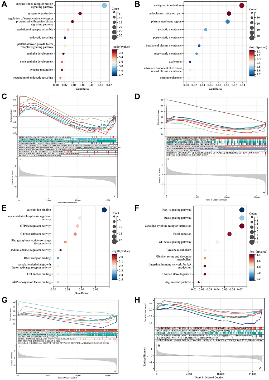 In this study, we used the GSE10540 whole gene expression matrix for enrichment analysis, which showed that the GSEA enrichment projects were verified with the GO and KEGG enrichment projects in the differentially expressed genes (Figure 4C, 4D, 4G, 4H).