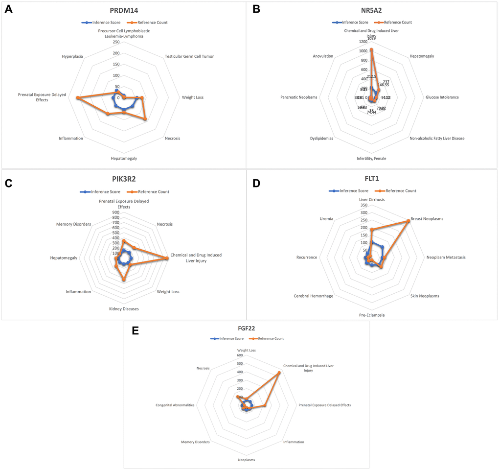 In this study, we input the list of core genes into the CTD website to find diseases related to core genes and improve the understanding of gene-disease association (Figures 7 and 8).