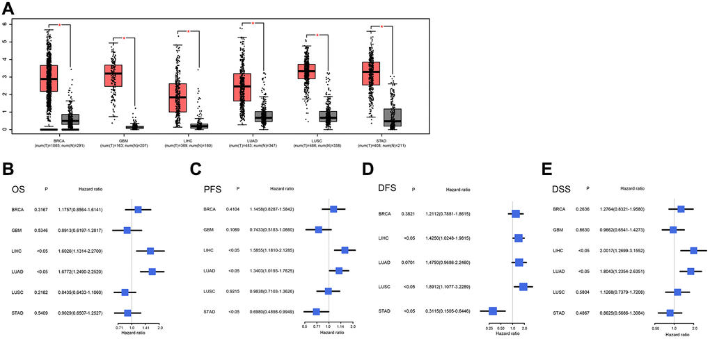 Correlation of NCAPG expression with OS and cancer type