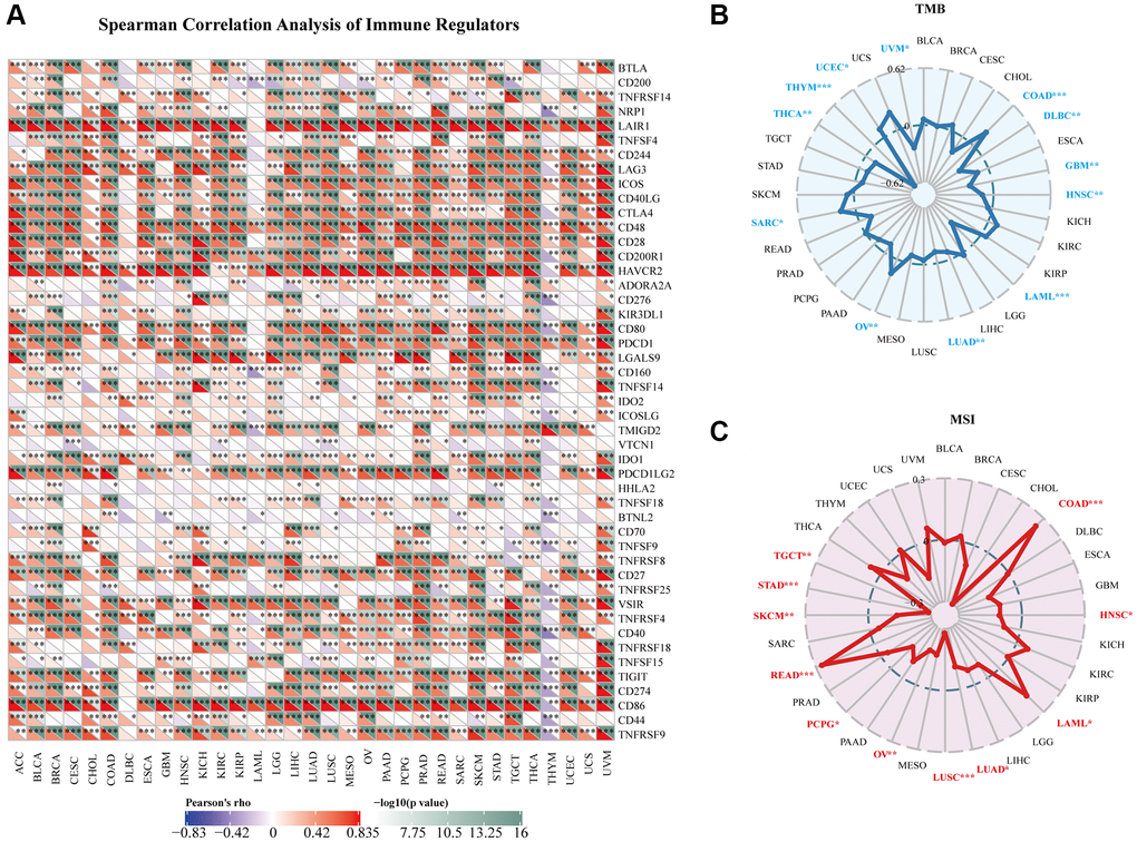 The correlations between AIF-1 and immunotherapy biomarkers, including immune checkpoint genes (ICGs), tumor mutation burden (TMB), and microsatellite instability (MSI), were calculated using Spearman correlation analysis across various types of cancers [22, 23]. To investigate the correlation between ICGs, TMB, and MSI, we utilized Sangerbox (http://www.sangerbox.com/).