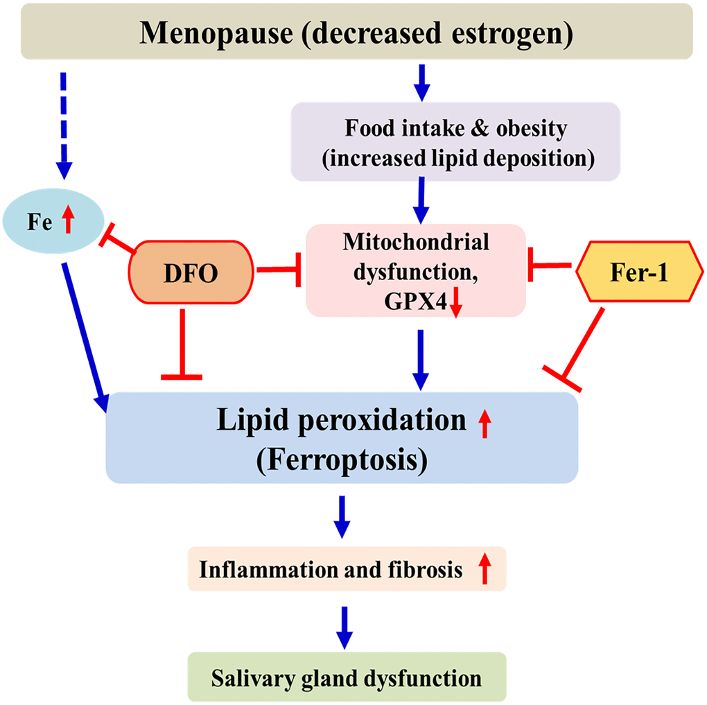 - 30. Kwon HK, Kim JM, Shin SC, Sung ES, Kim HS, Park GC, Cheon YI, Lee JC, Lee BJ. The mechanism of submandibular gland dysfunction after menopause may be associated with the ferroptosis. Aging (Albany NY). 2020; 12:21376–90. https://doi.org/10.18632/aging.103882 [PubMed]