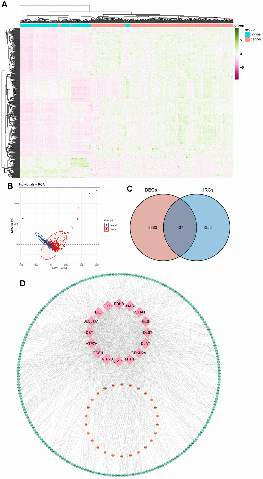 Cell death, a critical biological regulation during the development of organisms, ensures the stability of the microenvironment by causing the death of damaged, aging, or excess cells [8]. Copper- and mitochondrial respiration-dependent cuproptosis is the most recently identified mechanism of programmed cell death, crucial for the malignant behavior of tumor cells and immune regulation in the tumor microenvironment (TME) [9–11]. The clinicopathological characteristics of the tumor and the immune response in the TME exert critical roles in determining the long-term prognosis of GC [12]. Immune evasion is one of the hallmarks of malignant tumors, aggravating it by inhibiting immune clearance [13]. Cytotoxic T-lymphocyte-associated protein 4 (CTLA4), a key immune checkpoint protein, is significantly upregulated in the T cells in tumors and represses the immune response upon binding to ligands CD80 or CD86 on antigen-presenting cells [14]. Chemokine receptor CXCR4, belonging to the G protein-coupled receptor (GPCR) family, impairs chemosensitivity and promotes cell migration and invasion, stemness, and tumorigenesis of GC [15–17]. In addition, leucine-rich repeat-containing GPCR 6 (LGR6) facilitates cell growth and migratory and invasive ability in GC through the PI3K/AKT/mTOR pathway [18, 19]. Liu et al. showed that Neuropilin-1 (NRP1) represses CD8+ T cell-mediated antitumor immune responses and anti-PD1 immunotherapy, leading to tumor relapse [20]. Moreover, NRP1 enhances metastasis through promoting epithelial-mesenchymal transition (EMT) in GC [21, 22]. The expression of Anosmin-1 (ANOS1), a secreted glycoprotein of about 100 kDa, in serum and tissues is a potential biomarker for diagnosing GC [23, 24]. ANOS1 was also reported to facilitate cell proliferation, migratory and invasive abilities of GC cells [24]. Increased expression of integrin subunit alpha V (ITGAV) significantly enhances cell proliferation and migration, leading to a poor prognosis [25]. It was found that fatty acid binding protein 3 (FABP3) regulates mitochondrial metabolism to promote tumor progression [26, 27]. It is well known that the immune response in the TME can profoundly affect the programmed death of tumor cells [28]. Cuproptosis, as a recently identified programmed cell death mechanism, its regulatory pathways and mechanisms by the immune system are also being explored. However, there is no research that explores the potential relationship between cuproptosis and immune-related genes in the GC TME. Therefore, we try to investigate its regulatory mechanism through bioinformatic analysis, helping establish the foundations for further research. In addition, fully exploring the relationship between cuproptosis and immune-related genes in TME is crucial for better understanding the progression of GC to design better individualized treatment strategies.