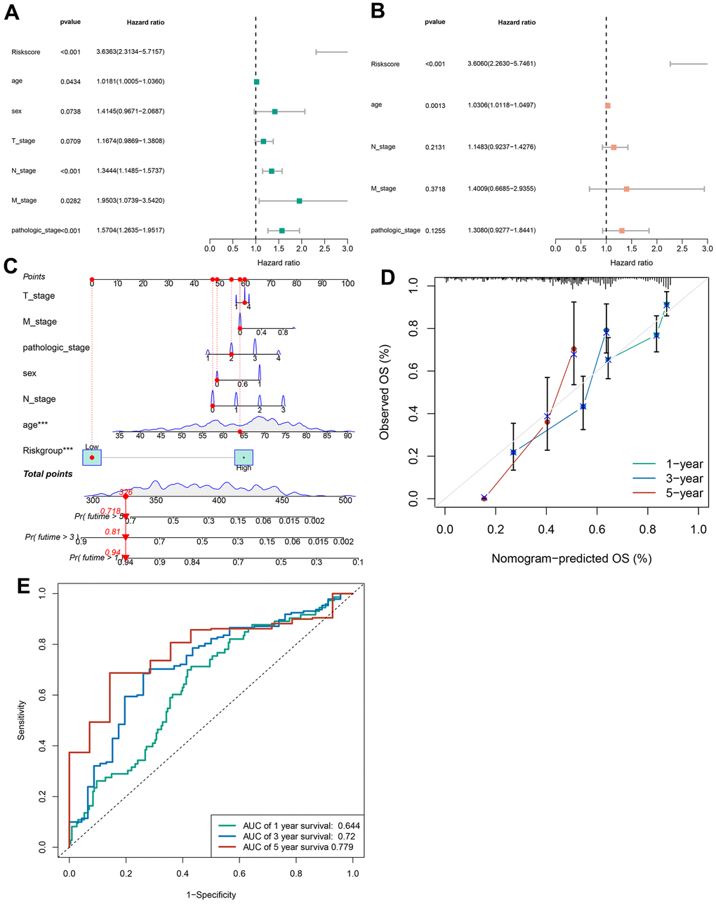 The independent predictive long-term survival ability of the signature for GC patients was tested using Univariate and multivariate Cox analyses. The cuproptosis-related immune biomarker signature and clinicopathological characteristics were considered to create a nomogram assessing the long-term prognosis in GC patients. The nomogram’s predictive power was evaluated using concordance index and calibration curve. In addition, we also investigated the connection between the clinicopathological characteristics and cuproptosis-related immune biomarker signatures.