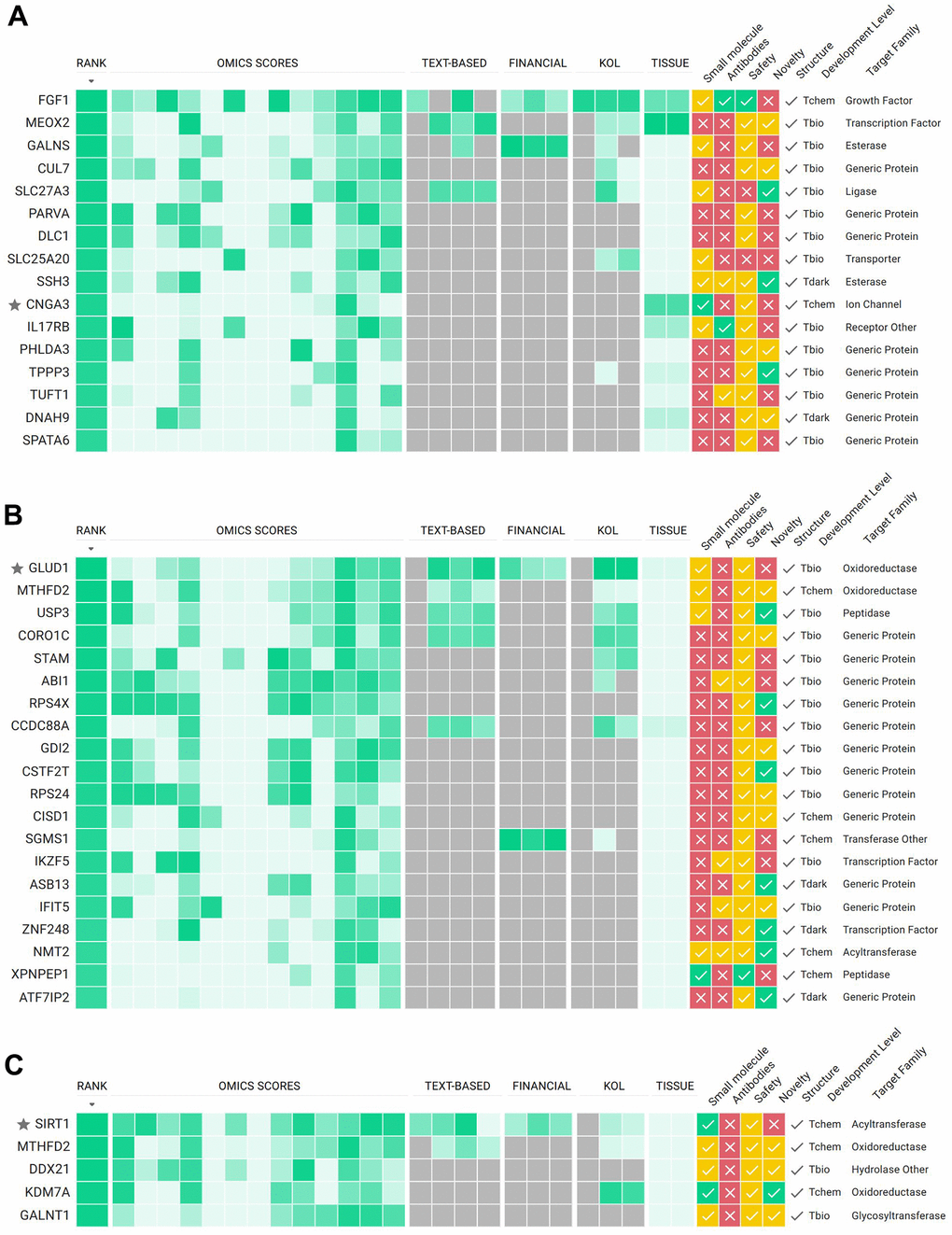 Finally, we determined three main strategies for target identification and utilized the PandaOmics TargetID engine in order to prioritize the best target hypotheses based on predictive AI-scores and additional assessment in terms of druggability, safety and brain tissue-specific expression.