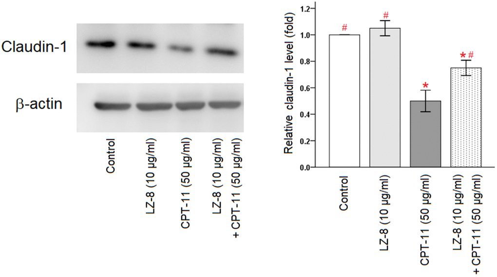 Effects of LZ-8 pretreatment on claudin-1 expression in CPT-11-treated IEC-6 cells
