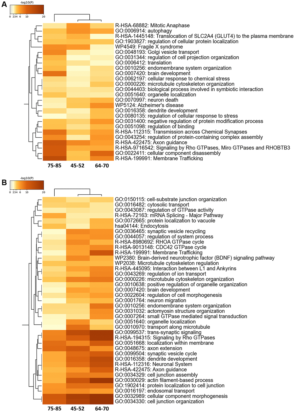 The identification of significantly dysregulated regulatory/metabolic pathways in FC proteomic datasets was made using Metascape [101]. A cell-type enrichment analysis across frontal cortex differential datasets was performed using cell-type protein marker lists derived from four purified brain cell types: neuron, astrocyte, microglia, oligodendrocyte and endothelial cells [102, 103]. Functional analysis of altered clusters of proteins was performed using ShinyGO (v0.77) software [104].
