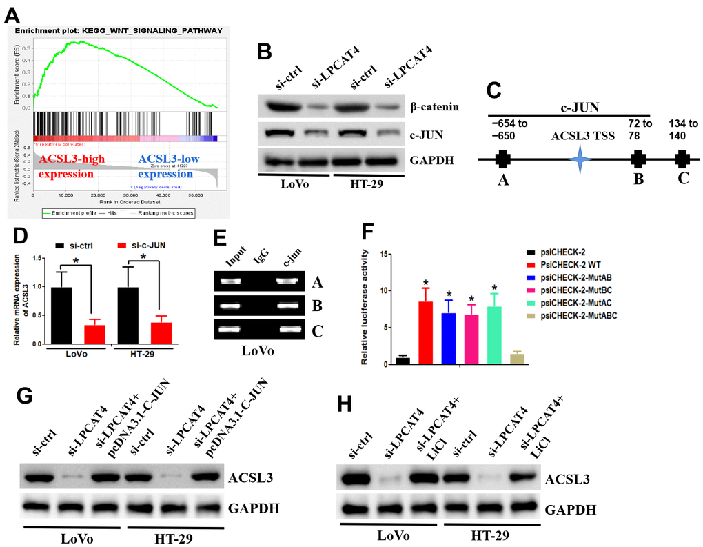 Taken together, these data implicated that the Wnt-β-catenin-c-JUN pathway may be involved in mediating LPCAT4 regulation on ACSL3 expression.