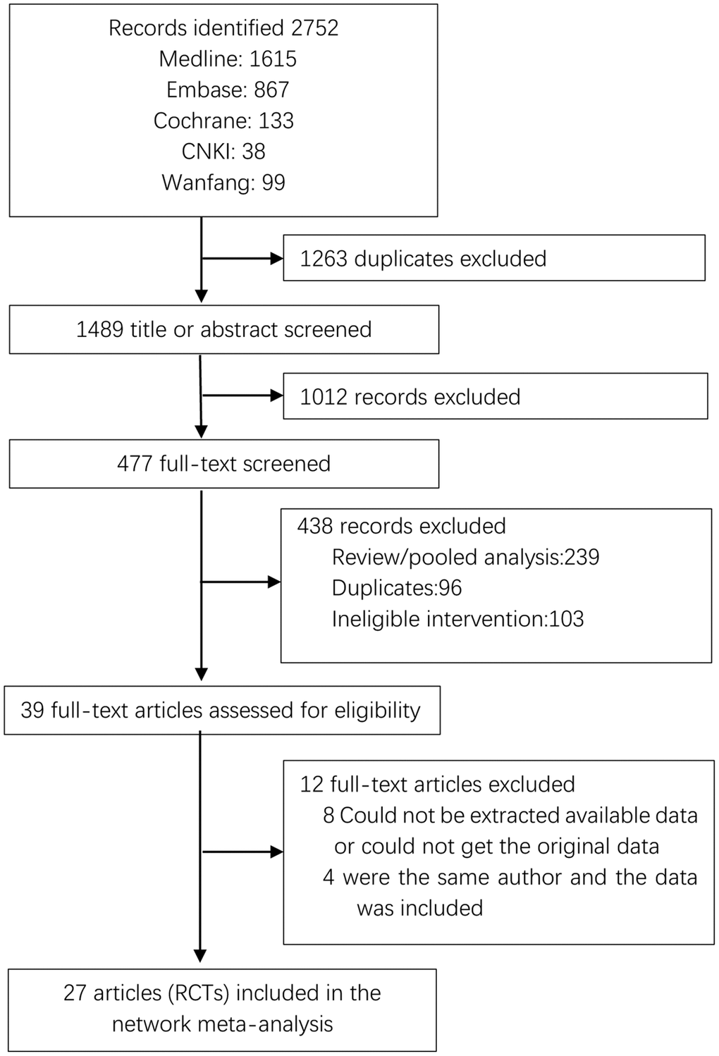 After deduplication, each study is assessed for primary qualifications in the title and abstract, and these articles were screened by two independent researchers (ZMH and SJW). Studies published only as summaries without extra data were excluded. In the case of file screening and data extraction as described above, any discrepancies will be solved by submitting them to the third researcher (ZHC). In accordance with the PRISMA guidelines, the screening process for included studies will be shown in a flow chart [21].