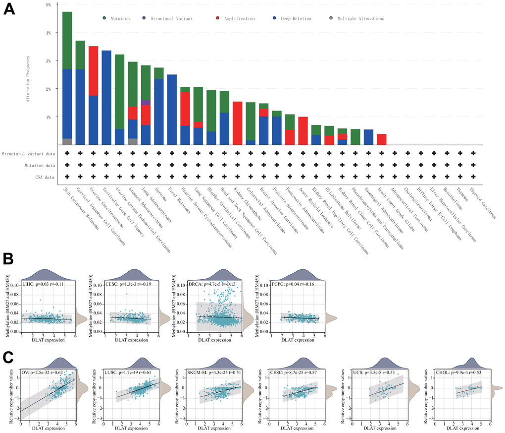 Table 1. Correlation of DLAT expression with methylation and copy number variation analysis.