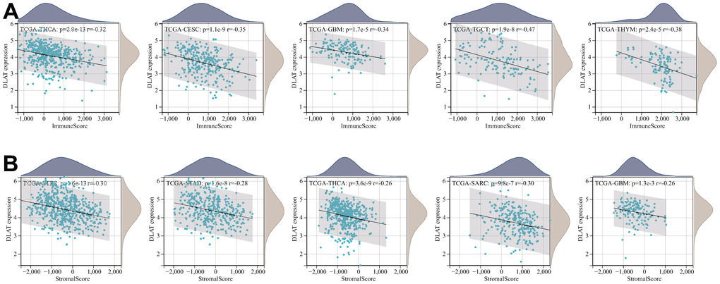 Table 2. Correlation of DLAT expression with ImmuneScore and StromalScore analysis.