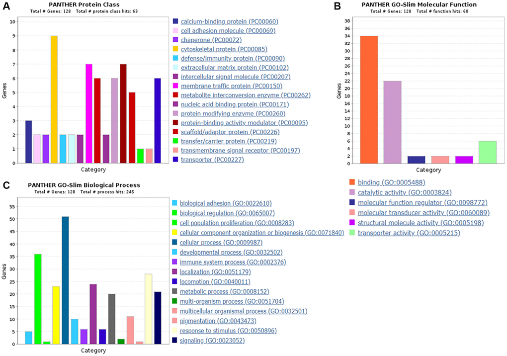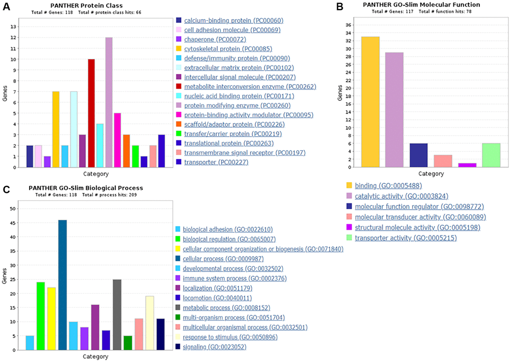 A GO analysis was employed to categorize the protein classification, molecular function, cellular composition, biological process, and mechanism.