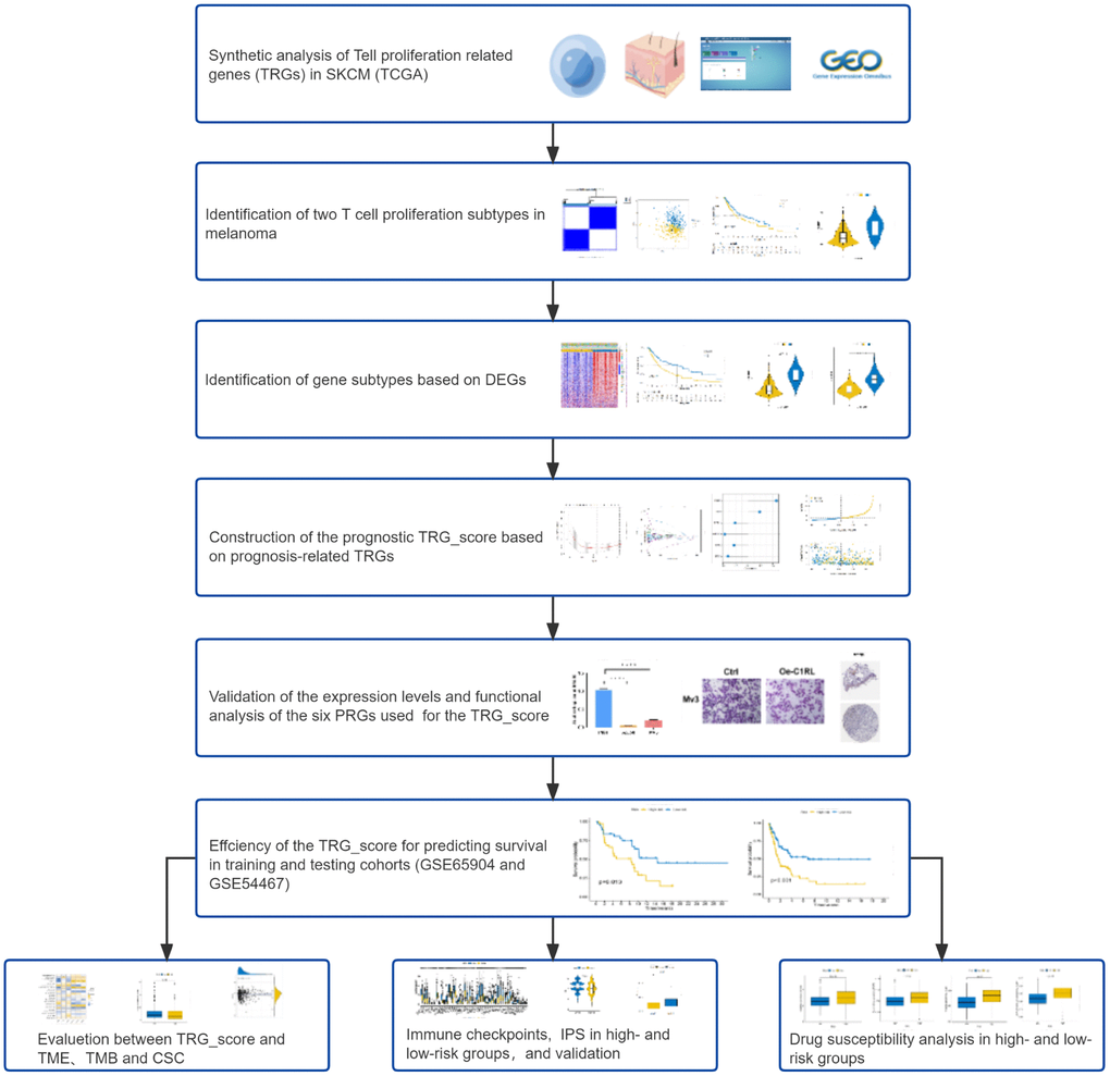 A recent study discovered a total of 33 genes called T cell proliferation-related genes (TRGs), which could drive T cell proliferation, promote proinflammatory cytokine secretion and increase the expression of activation markers [20]. However, the effects of these T cell proliferation-related genes (TRGs) on the prognosis and treatment responses of patients with SKCM remain unclear.
