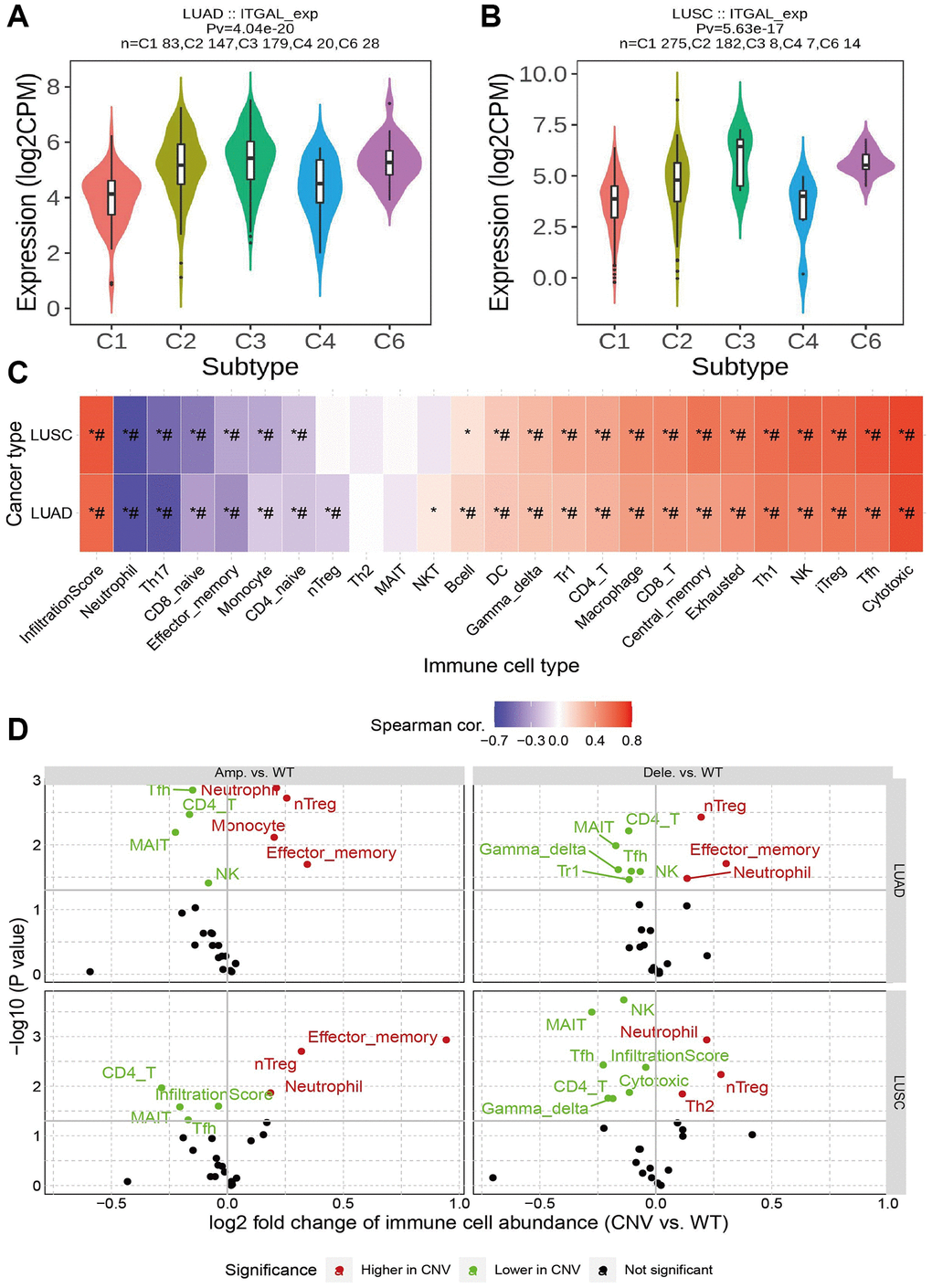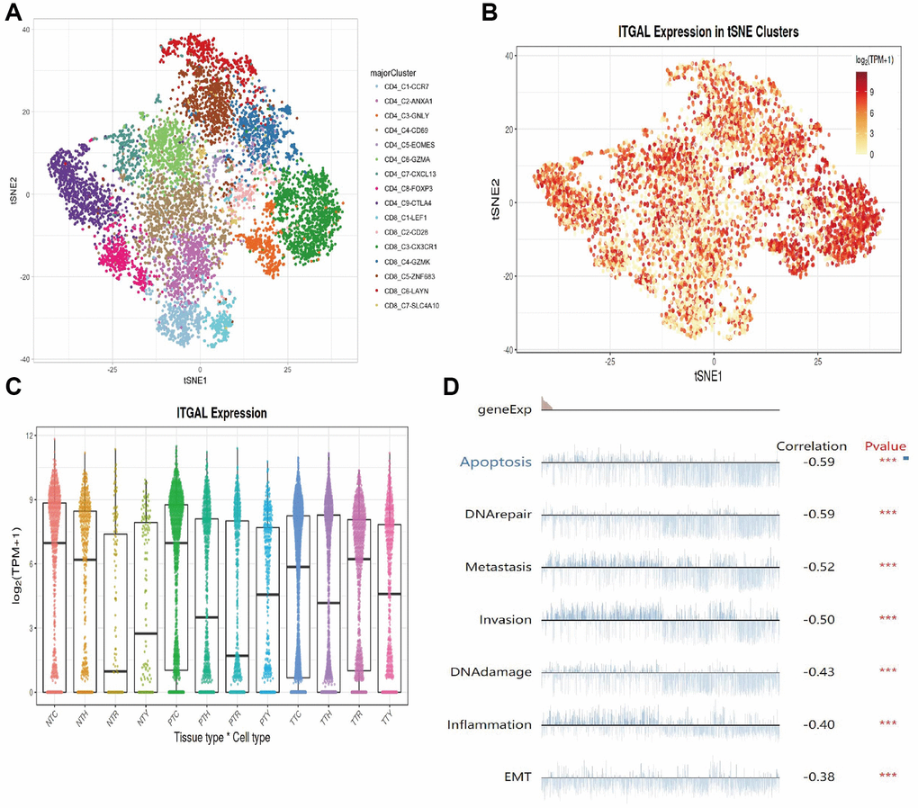 Single-cell sequencing analysis (http://lung.cancer-pku.cn/index.php). In this study, we examined the correlations between ITGAL and different T cells in NSCLC.