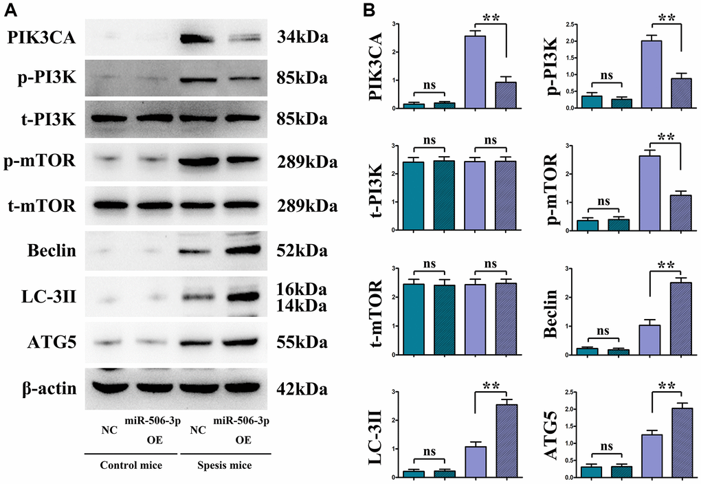 In conclusion, overexpression of miR-506-3p can suppress the PI3K-AKT pathway via degrading PIK3CA, thereby enhancing autophagy of renal tubular epithelial cells in sepsis, whose mechanism is related to the PI3K-AKT signaling pathway and autophagy protein Beclin.