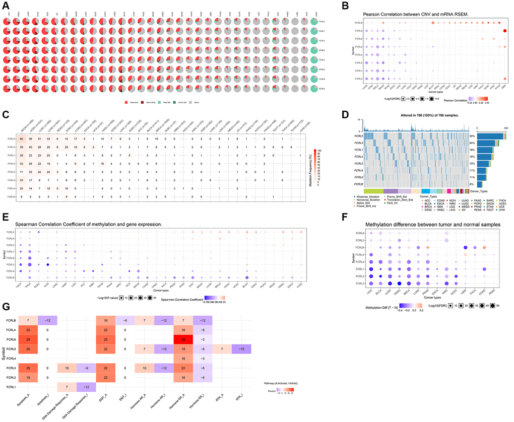 The copy number variation (CNV), single nucleotide variation (SNV), and methylation of FCRL family genes in different cancer type