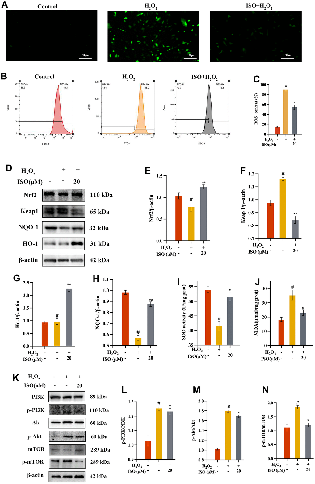 ISO inhibits H2O2-induced oxidative stress by regulating Nrf2/keap1 and PI3K/Akt signaling pathways