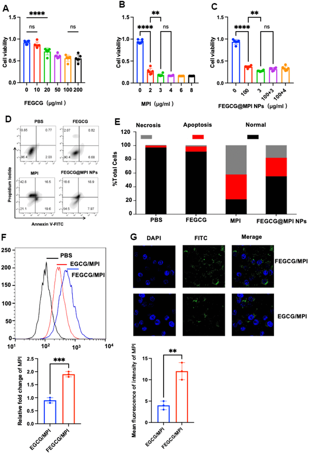 Cytotoxicity, apoptosis and cellular uptake of FEGCG@MPI NPs