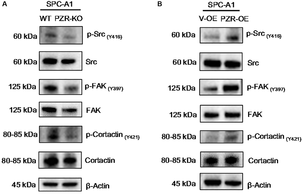 Altered expression of PZR in SPC-A1 cells affects tyrosine phosphorylation of c-Src, FAK, and cortactin