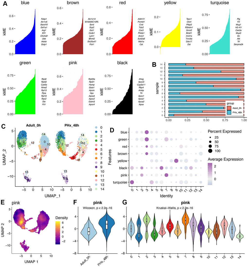HdWGCNA can be used to perform weighted gene co-expression network analysis (WGCNA) in high dimensional data such as single cell RNA-seq [12]. HdWGCNA could be utilized to construct co-expression networks in a cell type-specific manner, identifies robust modules of related genes, and provides the biological context for these modules. In this article, we used hdWGCNA to explore the function of hepatocytes after hepatectomy. And finally screening characteristic genes of a hepatocyte regeneration subgroup. The R package version of hdWGCNA used in this study is 0.1.1.9010.