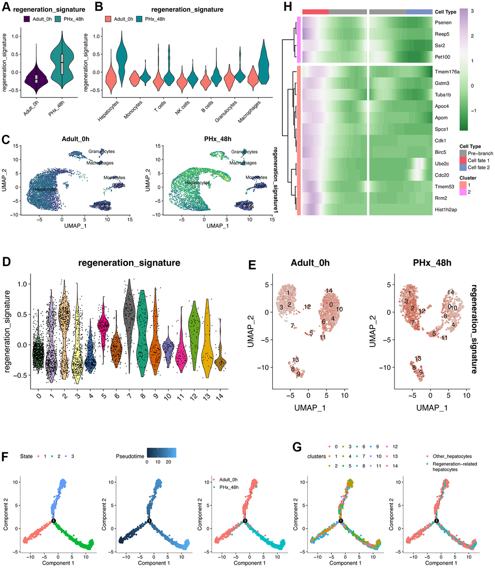 In this study, we utilized scRNA-seq data to identify key cell subsets and their associated specific signatures during liver regeneration following PHx. Furthermore, we sought to determine whether these signatures could be applicable to other forms of liver injury. After analyzing published scRNA-seq data regarding the expression of Birc5 and Hmgb1, we found that hepatocyte reprogramming was likely closely linked to these genes. It is noteworthy to consider whether Birc5 and Hmgb1 may also play important roles in other types of liver injury.