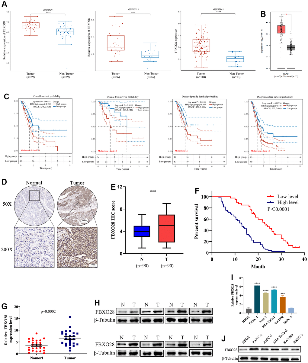 FBXO28 is highly expressed in PC and associated with poor survival prognosis