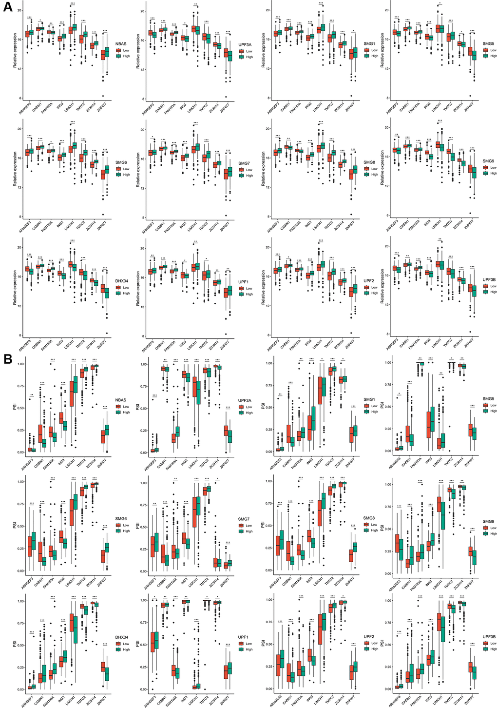 Tumor mutation burden (TMB) is a clinically related parameter that highlights the molecular characteristics associated with immunotherapy responses [13]. Splicing of pre-mRNA is significant to the pathology of various diseases, especially cancer. Aberrant splicing isoforms are highlighted as tumor markers and cancer therapy targets [14]. Aberrantly expressed transcripts in cancer cells are degraded by nonsense-mediated mRNA decay (NMD), a process involved in the mRNA quality control system [15]. NMD disruption factors have significant correlation with the splicing isoform count in TCGA-Lung adenocarcinoma datasets; [16] the precise identification of aberrant transcripts in cancer cells is essential for identifying potential neoantigens. Particularly, the initial hypothesis based on TMB as an immunotherapy-relevant parameter is associated with the fact that somatic variants can generate tumor-specific neoantigens. Several clinical trials have used TMB as an important stratification factor or a landmark endpoint to decipher the role of TMB in cancer-type treatment decision-making [17]. A minority of somatic mutations in DNA can give rise to neoantigens, but not all neopeptides present on the cell surface are immunogenic [18]. Consequently, TMB analysis to detect the underlying mutations subsets responsible for immunogenicity may enable substantial optimization of biomarker accuracy and improved therapeutic targeting of neoantigens [19]. Hence, profiling abnormal transcripts is equally essential as a potential biomarker of an ICP inhibitor (ICI).