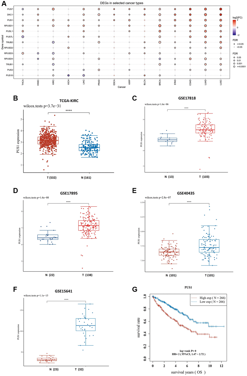 The expression of PUS1 is increased in renal cancer
