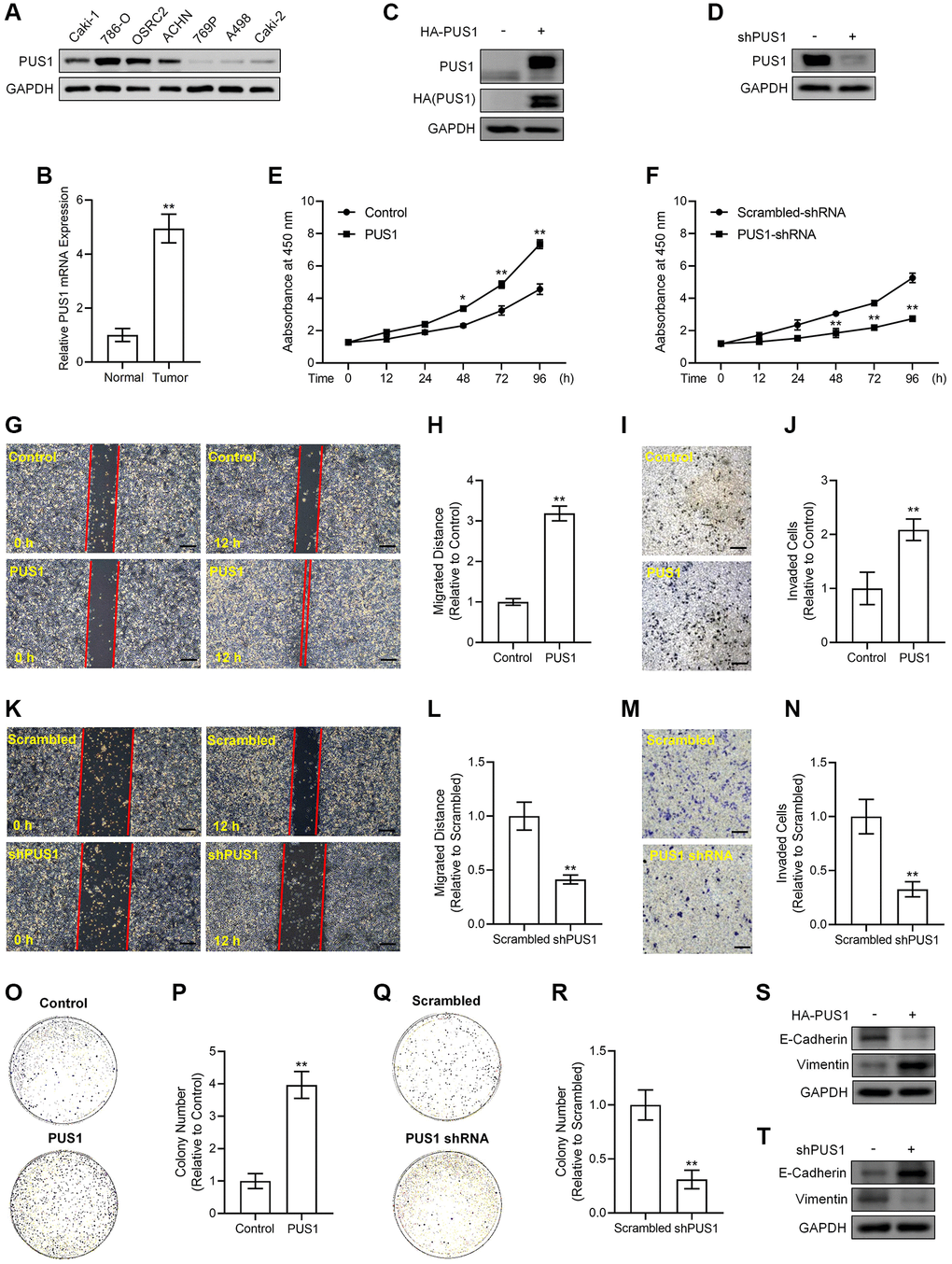 Expression levels of PUS1 are associated with RCC cell malignancy