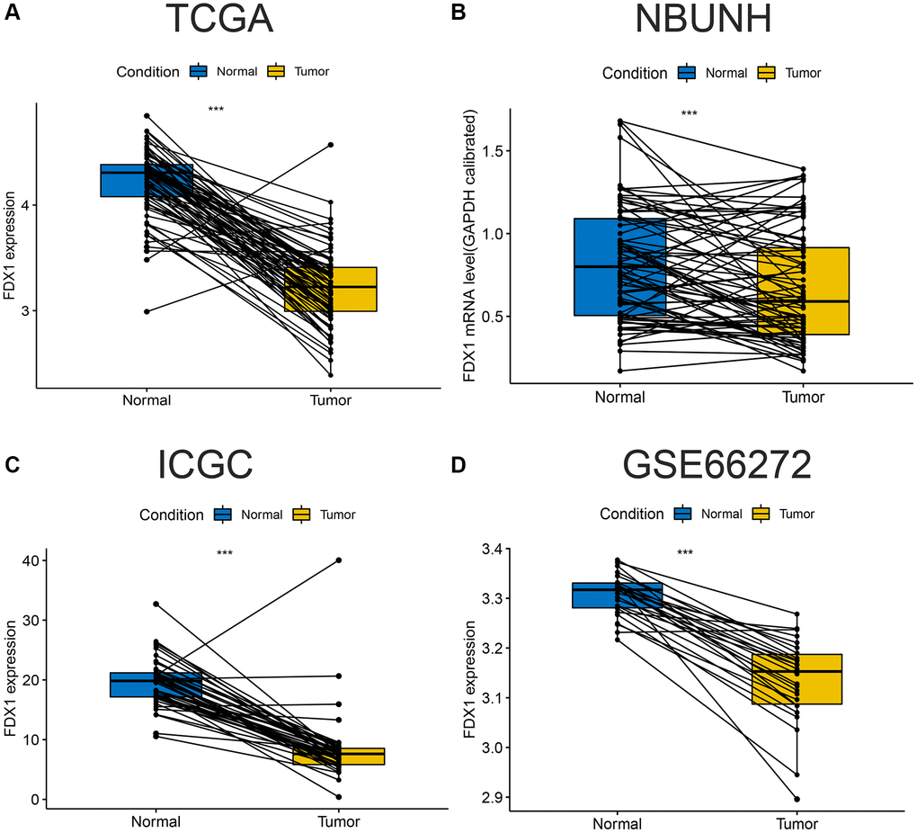 Table 1. Correlation between FDX1 expression and clinicopathological features in experimental (TCGA) and validation (NBUNH) cohorts.