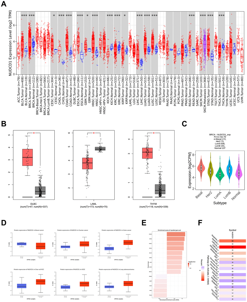 Expression patterns of NUDCD1 in cancer tissues and cells