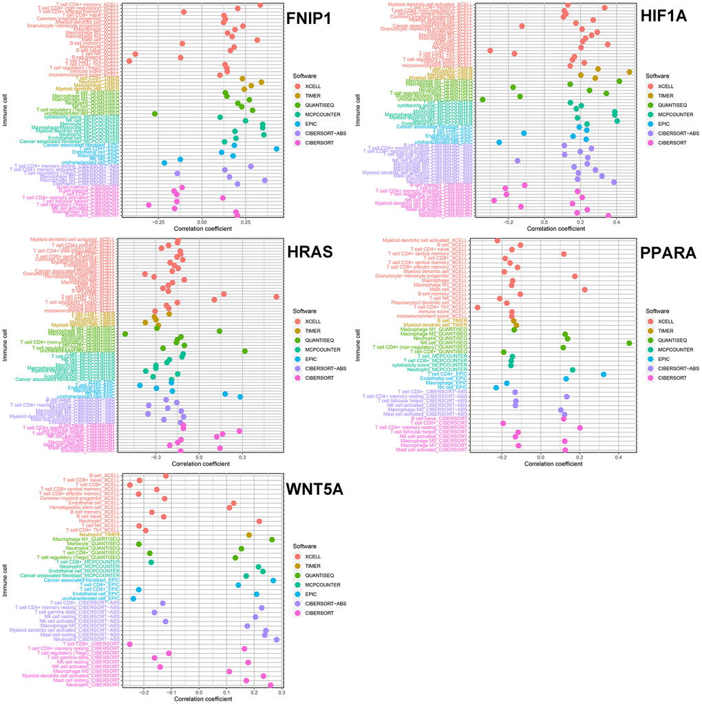 In our proposed classification, these five genes play an important role in the disease. In renal tumors, loss of FLCN-FNIP1/2 induces a non-classical interferon response, and FNIP1 and FNIP2 are crucial for FLCN’s tumor suppressor function [18]. FNIP1 plays an important role in regulating the specificity of skeletal muscle fiber type, anti-fatigue and susceptibility to muscular dystrophy. Calmodulin 2 promotes angiogenesis and metastasis of GC through STAT3/HIF-1A/VEGF-A [19]. Lactic acid promotes macrophage polarization in GC through MCT-HIF1α signaling, affecting the components of the tumor microenvironment [20]. Exosomes secreted by GC cells under hypoxic conditions promote the progression and metastasis of GC through the MiR-301a-3p/PHD3/HIF-1α positive feedback loop [21]. Erianin has been found to inhibit GC precancerous lesions by inhibiting the HRAS-PI3K-AKT signaling pathway [22]. HRAS overexpression predicts the response of gastrointestinal tumors to lenvatinib treatment [23]. Tipifarnib significantly improves disease control rate in HRAS-mutant salivary gland cancer patients [24]. PPARα is associated with histological types in GC [24]. Activation of PPARα can inhibit cell growth and induce apoptosis of GC cells [25]. Blocking PPARα can activate the IL-6/STAT3 pathway to prevent acetaminophen-induced liver injury [26]. IL-10 promotes Wnt5a-induced M2 polarization of tumor-associated macrophages, promoting the progression of colorectal cancer [27]. Gambogic acid can inhibit the progression of GC through the miR-26a-5p/Wnt5a signaling pathway [28]. HEF1 regulates tumor cell differentiation through the Wnt5a/β-catenin signaling pathway in GC [29].