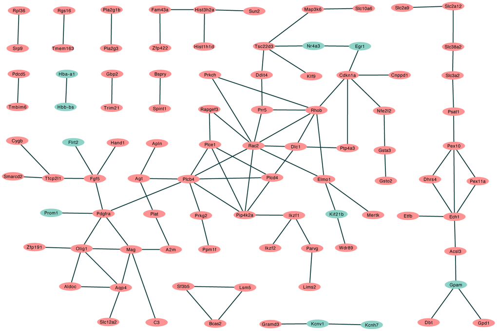 | Plcb4 | 12 | Tfcp2l1 | 9 | Egr1 | 5 | Lsm5 | 3 | Slc3a2 | 2 |