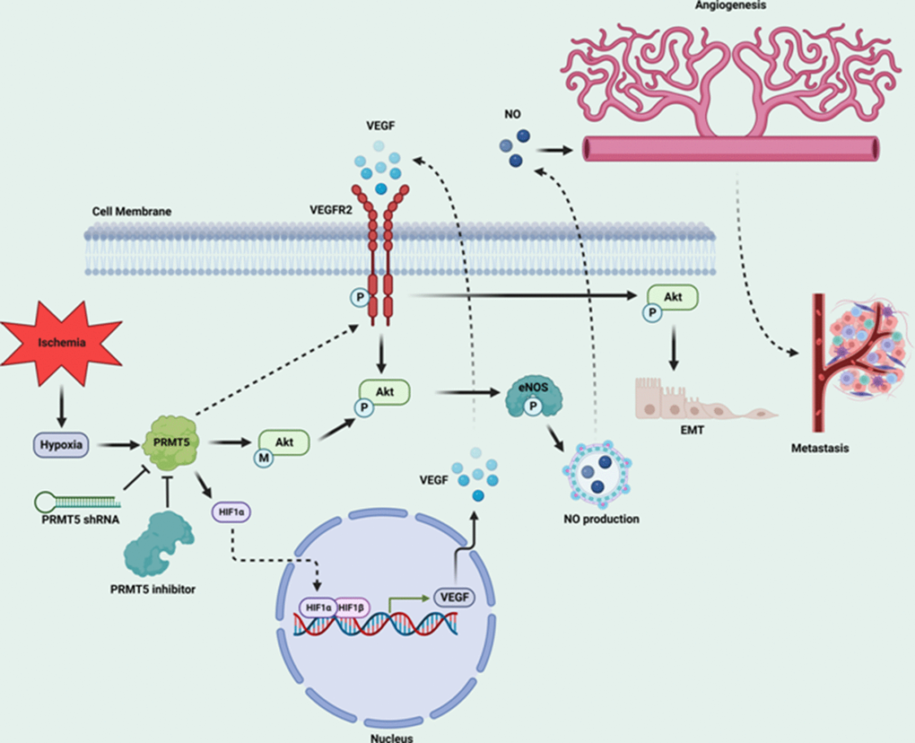 Our study highlights the vital role of PRMT5 in the development and progression of lung cancer. By showing that PRMT5 was induced by hypoxia and participated in regulating angiogenesis, EMT, and metastasis, this study provided valuable insights into the molecular mechanisms underlying these processes in lung cancer.