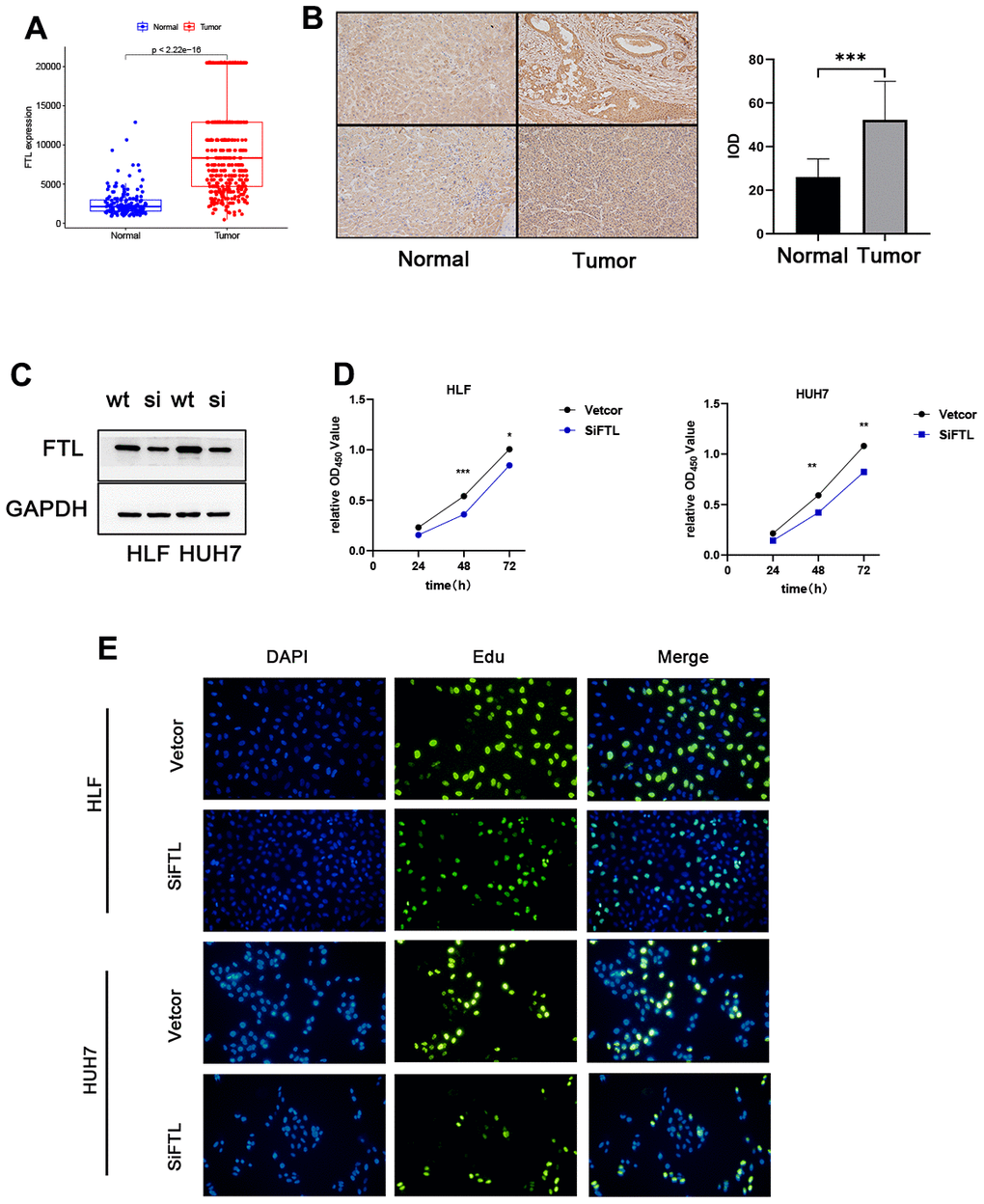Validation of the role of FTL in HCC cells