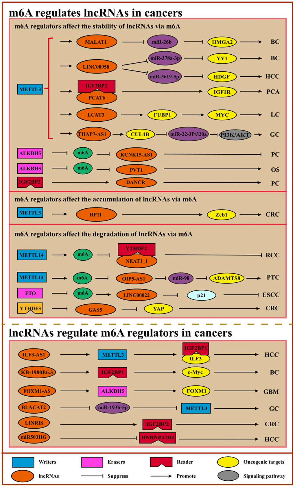 Table 2. Aberrant m6A regulators and its potential mRNA targets in cancers.