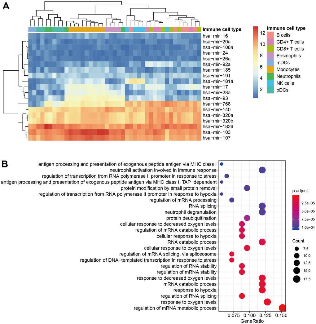 To explore the potential biological functions and pathways of immune-related signature mRNAs, we performed Gene Ontology (GO) [26] and Kyoto Encyclopedia of Genes and Genomes (KEGG) [27] pathway analysis on 146 immune-related genes (Supplementary Table 2) using the “ClusterProfiler” package in R [28]. GO terms and KEGG pathways with p < 0.05 were considered significantly enriched.