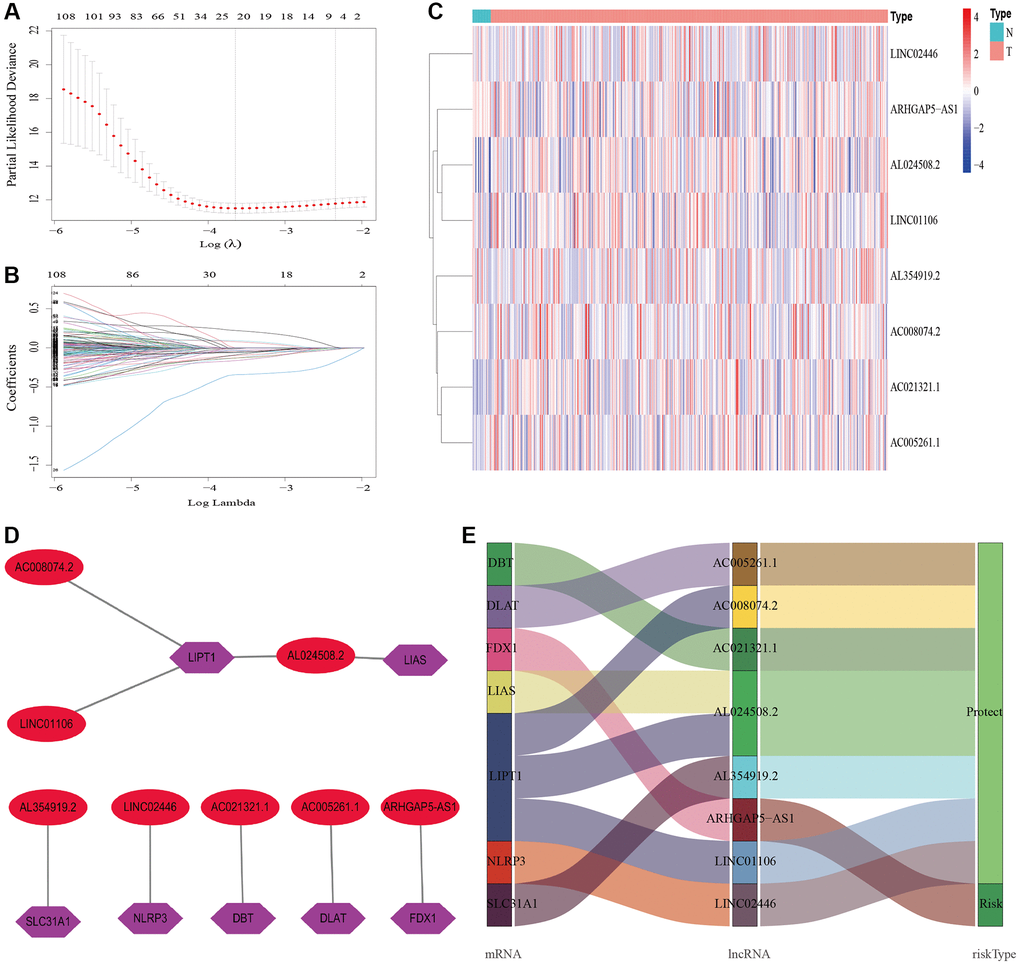 - 20. Wang T, Jiang X, Lu Y, Ruan Y, Wang J. Identification and integration analysis of a novel prognostic signature associated with cuproptosis-related ferroptosis genes and relevant lncRNA regulatory axis in lung adenocarcinoma. Aging (Albany NY). 2023; 15:1543–63. https://doi.org/10.18632/aging.204561 [PubMed]