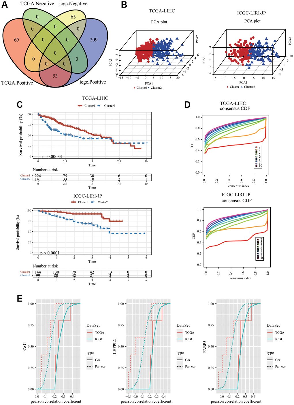 TCGA-LIHC (http://portal.gdc.cancer.gov/repository) provided the transcriptome information and corresponding HCC patients’ clinical records. In total, 365 HCC patients were included after the exclusion of individuals with inadequate survival data. Another RNA-sequencing dataset, ICGC-LIRI-JP, was employed for analysis. It contained 243 HCC samples that were retrieved from the ICGC database (https://dcc.icgc.org/). Detailed clinical data for all 365 TCGA-LIHC and 243 ICGC-LIRI-JP patients in our study were shown in the Supplementary Tables 1 and 2.