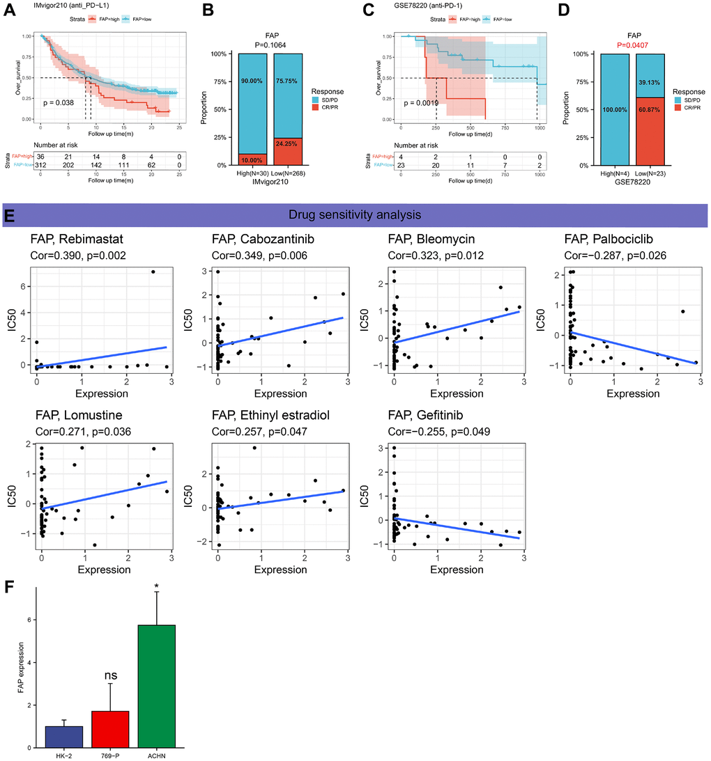 RT-qPCR results indicated significantly higher expression of FAP in ACHN cells compared to HK-2 cells. Furthermore, our study confirmed that high FAP expression is associated with a poorer prognosis in most cancers. However, it is linked to a better prognosis in UVM, DLBC, and PCPG. It is worth noting that the role of FAP in UVM, DLBC, and PCGP has not been elucidated, warranting further investigation.