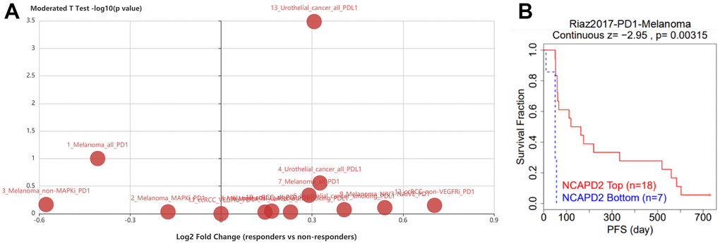 Table 1. The biomarker evaluation and AUC of NCAPD2 in response to immunotherapy in cancer using TIDE database.