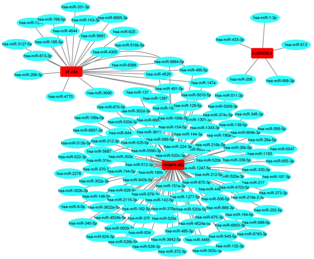 In this study, we identified and validated that ZFAS1, SH3BP5-AS1 and AL359220.1 were metastasis-related and considerably regulated LUAD progression. In addition, we provided an accurate and promising MRRS based on the three metastatic lncRNAs for prognostic evaluation of LUAD. Lin et al. found that the elevation of SH3BP5-AS1 induced by N6-methyladenosine prominently facilitated pancreatic cancer cell migration by sponging miR-139-5p and targeting CTBP1, accordingly activating the WNT signaling pathway [25]. Besides, ZFAS1 has ever been demonstrated that closely affected the survival of patients with gastric cancer and could be served as a strong candidate for prognostic evaluation [26]. A study of Fan implied that increasing expression of ZFAS1 fostered LUAD progression by attracting more miR-1271-5p and upregulating FRS2 [27]. Nevertheless, few studies have revealed the potential role of AL359220.1 as yet.