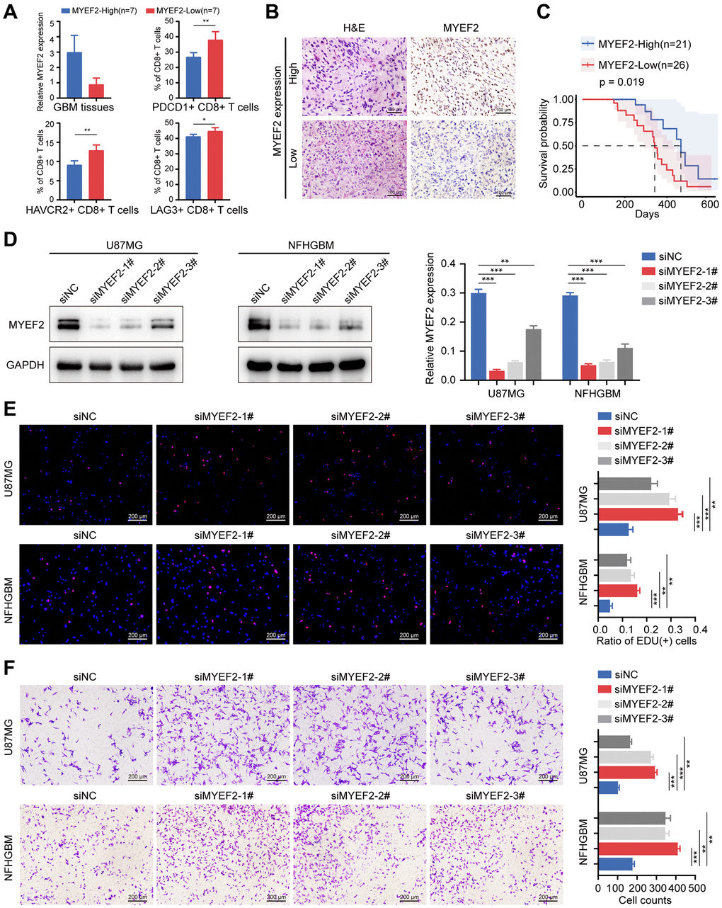 Transient knockdown of MYEF2 in GBM cells