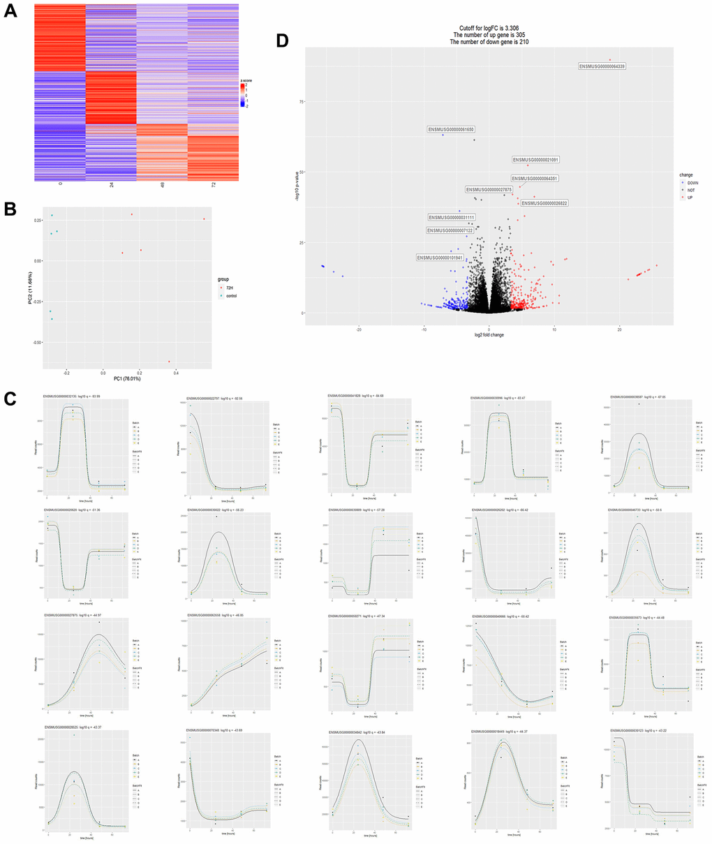 At the National Center for Biotechnology Information (NCBI), GEO datasets were searched for the Sepsis-related transcriptome dataset (GSE171546). Based on the mRNA gene expression profile of model mice in time sequence, the time-related differential mRNA of CLP mice was explored. Using the R language’s ImpulseDE2 software package, the transcriptome data in the heart tissue of CLP mice was discovered. The expression matrix was analyzed by intergroup analysis and principal component analysis (PCA). The differential gene expression between CLP and control groups was predicted by a linear model analysis using the Bioconductor package “DESeq2” [18]. Using the Bioconductor package “clusterProfiler”, the key pathway information was obtained and visualized using R language [19], for Gene Ontology (GO) and Kyoto Encyclopedia of Genes and Genomes (KEGG) metabolic pathway enrichment analyses. Additionally, the “fgsea” R package was employed to perform Gene Set Enrichment Analysis (GSEA) on the entire differential gene set, and the results were visualized.