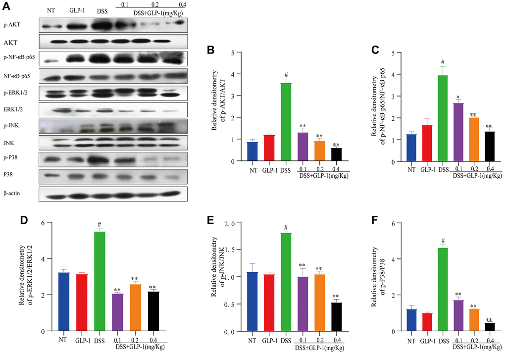 Effect of GLP-1 on the phosphorylation of Akt/ NF-κB p65 and MAPK in DSS-induced colitic mice