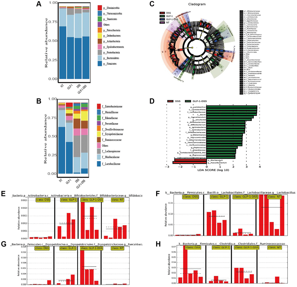 To further investigate whether GLP-1 treatment influences the intestinal microflora, we tested the microbial composition among four groups of mice (Figure 6).