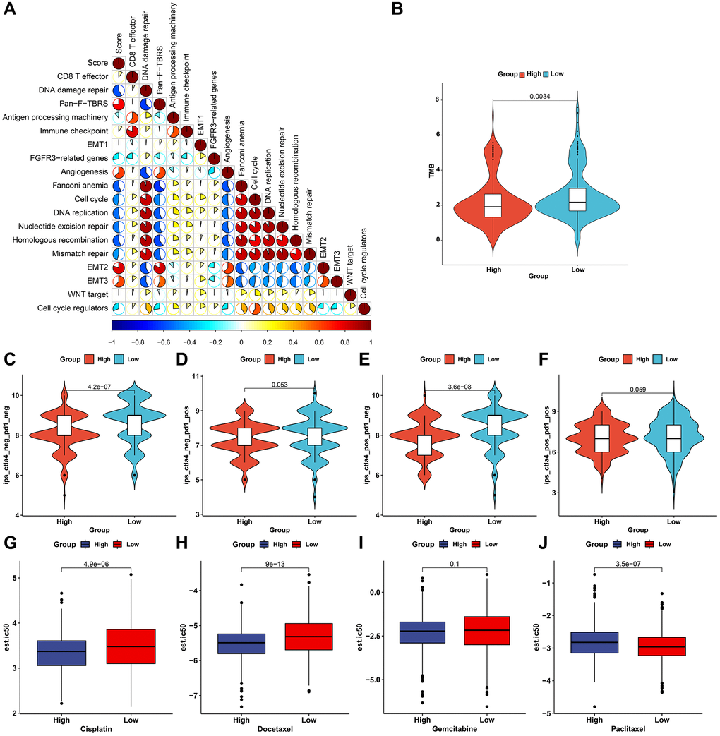 Cisplatin, docetaxel, gemcitabine, and paclitaxel were selected as candidate chemotherapeutic agents. To predict the sensitivity of these chemotherapeutic agents, IC50 of each sample was measured utilizing pRRophetic tool [47].